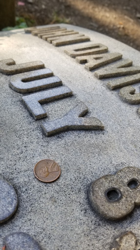 “I’m leaving a heads up penny for John D.,” he explained, leaning down and placing the shiny penny. “It’s good luck. Hang around for a while and maybe you’ll get a touch of greatness.” It was well into 2020 and greatness was something I could do a little more of, so I did hang around while the man walked off and disappeared. I sat there, in the shadow of the obelisk, wondering if ghosts wore denim vests.